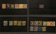 German Area, Selection of Mostly Premium Material on Cards, 1850-1955, On black cards with the identifying Scott numbers provided by the collector on the reverse side; excellent coverage of the classics, from States to Colonies to East & West. Some better sets & singles include Baden mint #24 (no gum), Bavaria used 7, 13-14, mint 89a (margin pair), J1 (signed), Brunswick used 11, Hamburg used 9, Hanover used 7-8, 13, 18, 26, Prussia mint 1, used 1-5, 6-8, Saxony mint 11a (pair), Wurttemberg used 16, 18, 27, 30, 34a, 45, 48, and Germany used 11, 13 (pen cancel), 14, C35-37, CL3-4, mint 398-400, B19-22, B134-36, B310-13, B314-15, B316-17, B320-23, C44, 9N1-20, as well as a number of errors, such as an inverted surcharge (246a), value inverted (289b), value omitted (326b), missing red color on B32 (unlisted), and imperforates 46b, 55a, 254a, 291a. Other highlights from the German realm include Offices in China mint 1c, used 5a, 36A, 53, Offices in Turkey mint 30, 53, 59, Cameroun mint 64a (signed Bloch), Kiauchau used 29 (on piece), mint 33-42, Mariana Islands mint 13a, Marshall Islands used 3, Danzig mint 21a, 48 (signed Ressel), 62a, used C31-35, Marienwerder mint 28, 30-31, Saar mint 20, 38-39, 68a-76a (tête-bêche pairs), B29, CB1a, used B84-88, DDR mint 82-84, and many others. Owner CV very nearly $40,000, Fine to Very Fine, photographed in full. Shipping charges apply - weight 1.2 lbs