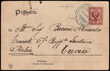 COMANDO TRUPPE ITALIANE IN CINA. Cartolina postale spedita a Treviso il 30/6/1904 affrancata in tariffa stampe con francobollo da 2 centesimi Floreale rosso bruno "Aquila Sabauda" 1901 (Sassone n.69) annullato con il guller azzurro "COMANDO TRUPPE ITALIANE - CINA 30 GIU. 04". Raro. Dettagliato certificato Caffaz