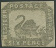 1857-59 Hillman Lithographs Imperforate 6d grey-black SG 19, close even margins, unused, Cat £14,000. RPSofL Certificate (2021) refers to "small surface abrasion top left" which is actually a natural paper inclusion, and "small [scissor] cut bottom right" neither of which detracts from the very fine facial appearance of this rare stamp. Lord Vestey had two examples 1) slightly larger than this with "some horizontal creasing", that sold for £5400; and 2) a similar example to the current stamp, that sold for £4200