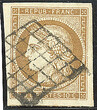 No 1a, bistre-brun, un voisin, obl grille, jolie pièce. - TB (cote Yvert: 475 €)