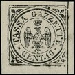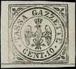 1859 - Newspaper Postage Due 10c black, two copies, one with horizontal guideline, the other with vertical guideline of separation (not issued); mint with gum. 1 Cert. Raybaudi (Sassone 5, 5I - Euro 4,000)