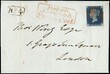 1840 - Great Britain: 2d blue, pos.F-I, canceled red maltese cross on cover to London. On the front boxed 'Peter Borough Pennipost' in red, and black 'N°4'. Very interesting and fresh. cert. Bolaffi (SG 4 - GBP 2.750)