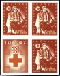 1942, 1, 50 K. Red Cross, proof print in red-brown, imperforated in the block of four with ornamental field, unused without gum, from minister album. (7 % import duty will be charged on the hammer price, if this lots is shipped within the EC or the UK)
