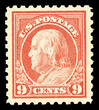 1914, 9¢ salmon red, S.L. watermark, perf. 10 (Scott 432),
