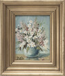 Blumenstillleben, Ölgemälde auf Leinwand im Prunkrahmen. Links