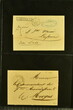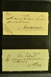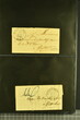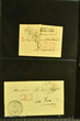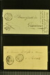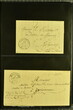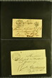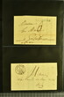 Kanton Waadt 1798/1860 (ca.): Sammlung von 160 vorphilatelistischen und vereinzelt markenlosen Briefen, alphabetisch nach Poststellen in zwei Briefalben. Dabei sechs Helvetikbriefe inkl. seltenem Ortsstp. "LAUSANNE" in schwarz (Grünewald 404b/10), seltene Ortsstp. der Kantonalpost wie Stabstp. "VALLORBES" in schwarz (Wi. 1853/11), "MORGES" in rot (Wi. 1740a/8), "PAYERNE" (Wi. 1796/8), "LASARRAZ" (1685/8) oder "ST. SAPHORIN" (1845/8), Valorenstp. wie die eingefassten Stabstp. "GRANDSON" (Wi. 1683/9), "LA SARRAZ" (Wi. 1689/10) und Nebenstp. wie Stabstp. "CHARGÉS" von Payerne (Wi. 1808/10), gefasstes "CHARGÉ" von Yverdon (Wi. 1911/9), "P.P." von St. Saphorin (Wi. 1848/9) und Ballaigues (Wi. 1614/8) oder nicht gelistetes "P.D." von Ballaigues (1849). Ausserdem interessante Verwendungen wie Wertbriefe, Forwardedbriefe, Auslandsbriefe nach Deutschland, Frankreich, Italien oder Belgien sowie ein BoM nach Spanien (1860), handschriftlicher Herkuntsvermerk "Grandson" mit beigefügtem schwarzem "PP" (Wi. 1684/8) auf Salzbrief nach Lausanne (1813) sowie ein Brief von Aubonne nach Genf (1836) mit seltenem schwarzem Taxzahlenstp. "2s" im Oval (Wi. 2658/9). Eine vielfältige Sammlung in leicht unterschiedlicher Erhaltung.