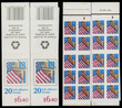 1996, Flag over Porch, two $6.40 intact booklets containing 32c self-adhesive stamps in two panes of ten, one booklet has die cutting omitted, the other one has vertical cut strongly shifted to the left, plate No.66666 or No.11111 respectively, each stamp dated ''1996'' in red, backing paper intact, VF, C.v. $400 for the booklet with die cutting omitted only, Est.$200-$300