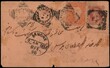 India Queen Victoria ¼a postal stationery postcard additionally franked with 1888 3p orange from Paonta to Lahore (present day Pakistan). Postcard cracked from fold and reinforced with hinges. A rare commercially used combination item from Sirmoor. Ex. D. Bates. 2025 ISES certificate