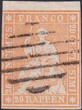 20c orangegelb, 25B (25B1) LUZERNER RAUTE in schwarz ideal zentrisch, Marke mit starkem Relief, links schmal geschnitten sonst weissrandig mit oberem Bogenrand, sehr schöne einwandfreie "Strubel-Dame" mit Befund BPB (22) SBK=LP!