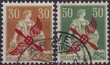1919/20, F1+2 (Michel 145+152), im Eck gestempelt mit rotem Propeller-Aufdruck, tadellos gezähnt, F1 mit minimer Knitter-Spur, Marken jedoch gut erhalten - schön wirkendes DUO, Buchpreis: 2200.- preiswert !