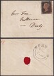 1840 1d Black (plate 2, KA), 4 good margins on small envelope (letter enclosed), tied by red MC cancel. Addressed to "Melbourne nr Derby" (UK), b/s Norwich NO 18 1840 cds. SG Spec AS14. Cat £750.