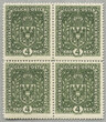 1916, 4 K, olivgrün, 4er Block, Breitformat, postfrisch, frisches erlesenes Prachtstück! Schätzpreis 180€.