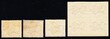 1862, 3d. WZ Krone CA seitwärts, 3 Farbnuancen. Dazu ungezähnter 4er Block ebenfalls mit WZ