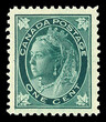 1897, Queen Victoria "Maple Leaf", 1¢ blue green (Scott 67), exquisiitely centered amidst jumbo margins, incredibly deep rich color and a proof-like impression, rarely offered in this condition, o.g., never hinged, unpriced in grade of 98, with 2025 P.S.E. certificate graded SUP 98.