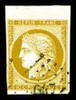 N°1, 10c bistre-jaune obl pc, bord de feuille. TTB (signé Scheller/Brun/certificat) Qualité: Oblitéré