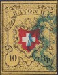 Blaue Rosette von Zürich (Stäfa/Regensberg) T.12 B-RU, sehr gut geschnittene Marke mit seltener Abstempelung aus dem Kt.Zürich, gut geschnitten, im Papier rückseitig raue Stelle, soweit gut erhalten, Kat: 350.-+1000.- für Stempel