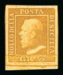 1859 1/2 Gr. plate I, porous paper (NA) olive yellow (giallo oliva) in very fine large margined single from the bottom of the sheet, showing original brownish gum, fresh and very fine.Extremely important unused shade and unpriced in Sassone.Expertise: Signed E. Diena and A. Diena, Cert. Emilio Diena in French (1925), Cert. Alberto Diena (1960), Cert. Giacomo Bottacchi, AIEP. (2026)