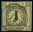 1 Kr. schw./sämisch, I. Auflage, ringsum voll- bis breitrandig und klar gestempelt mit Nummernstempel "31" EBERBACH. Luxus. Doppelt geprüft Pfenninger und Fotoattest Stegmüller BPP: "Farbfrische und feine, tadellose Erhaltung, nicht repariert.". (Michel 1.000.-).