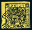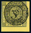 \ZWEI BOGENECKEN\: 3 Kr. schw./gelb, linke obere und rechte untere Bogenecke mit bis zu 4mm breiten Bogenrändern und Nummernstempeln "95" MÜLLHEIM bzw. "19" BRUCHSAL. Luxus. Beide Marken sind an allen Seiten voll- bis breitrandig geschnitten und zeigen jeweils an einer Seite den Ansatz einer Nachbarmarke. Luxus. Fotobefund Stegmüller BPP für die rechte untere Bogenecke: "Klare Abstempelung und feinste, tadellose Erhaltung, nicht repariert. Ein dekoratives Exemplar.".