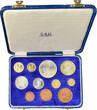Kursmünzensatz (11 Münzen) 1959 mit 1 und 1/2 Pound Goldmünzen. Fb. 9/10. In Ausgabeschatulle, Stempelglanz.