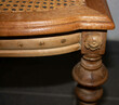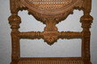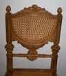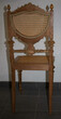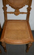 2x antike Holzstühle mit Schnitzereien, Sitzfläche und Rückenteil aus Korbgeflecht. Höhe ca. 93 cm, Tiefe ca. 41 cm und Breite ca. 40 cm.