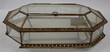 Wandleuchte aus Messing und Glas im Stil eines Gewächshauses, mit kleineren Beschädigungen. Maße: Höhe ca. 45 cm, Breite ca. 25 cm, Tiefe ca. 7,5 cm. Nicht auf Funktion geprüft!