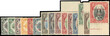 1942-43 Kedah set of 15 to $5 (10c to $5 marginal), type 3 or 4 opt, unmounted o.g. (but for 4c, 10c and 50c. large part o.g.) 12c and 50c with creases and the set with yellowish gum (as always), still a very fine set indeed, the key $1,$2 and $5 all unmounted marginal singles, the latter with part imprint