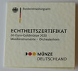 50 Euro, Gold, Orchesterhorn, 2020 J (Hamburg), in Kapsel und in