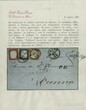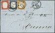 1862 - 10c bistre, 20c indigo and 40c dark carmine red, from “MILANO 13 NOV 62' to Vienna. Exceptional tri-colour franking composed of three perforated Matraire issues of Italy on cover. Extremely rare, the finest of the two known. Cert. Diena and Daniele