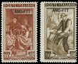 1951 - Italy at Work, 100L and 200L overprinted 'AMG-FTT' with perforation 14 1/4x13 1/4. The 100L with long dash. Cert. Sorani for the 100L, Raybaudi for the 200L, Scolari for both denominations (Sassone 106/II+107/II - Euro 6,600)