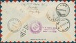 1945 244-245 obl Thysville par vol d'essai New-York-Léopoldville et retour, départ du 27/10/45. Non réclamé (verso) et retour. Griffe encadrée en rouge O.A.T