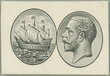 1920 SG.59-67, 300 years of colony PLATE PROOF vignete - center of stamps of this issue Ship and George V., in black color on carton paper; ex. DLR archives, i.a. Christies, 1996