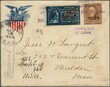 Guam: Special Delivery Issues 1899: 10 c. blue, used with 1899 10 c. brown, Type I, each tied to red & blue Eagle on Shield registered patriotic cover to Malden, Massachusetts by purple "Agana Isle / of Guam / Jun 14 1900" three-line datestamp, reverse with "Mil. Sta. No 1 / Manila. Phil. Islds. / Rec'd / Aug 7" transit c.d.s., Chicago RPO (Sep 12) and faint Malden c.d.s. receiver (Sep 13) on front, a few light tone spots, reduced at right, an otherwise fine and rare usage, the only recorded example of a patriotic Special Delivery cover from the United States Possessions