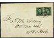 CUBA: OCUPACION ESTADOS UNIDOS. 1898 (julio?). SANTIAGO a NEW YORK. Dos sellos de 1 cto. habilitados con mat. ovalado de confección local MIL.STA. Nº1/SANTIAGO. MUY RARA