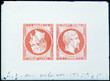 N°18 1f Empire, paire tête-bêche, cliché d'impression sur plaque de verre, utilisé par Jean de SPERATI, avec ses annotation en marge. TTB