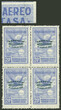 GJ.665, 1930 20c. Zeppelin with green overprint, block of 4, one with "AE.REO" variety, MNH (+40%), excellent quality. NOTE: The value of a normal block is US$67+