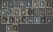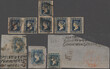 1854-55 Collection of about 120 used stamps of lithographed ½a. blue (about 80, all dies), 1a. red (25, all dies incl. die III), 4a. blue & red (3) and 9 of typo 2a. green, with a lot of colour shades, plate flaws, retouches, cancellations, few pairs etc., plus four covers/part covers (½a. resp. 1a.). In addition 20 unused stamps incl. 17 essay/reprints (seven stamps with "SPECIMEN" or single letters on back) and two unused 1a. red from die II. The quality is found slightly mixed but good to very fine mostly. (M)