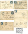 INDOCHINE : 1863/91 Lot de 5 lettres militaires RARES (avec défauts). Ex DESROUSSEAU : CCN2 + CORR. D'ARM. TAY-NINH, CORR. D' ARM. MY-THO, CORR. D' ARM. CHOLEN, CORR. D' ARM. SAIGON avec FRANCE (n°60) + Taxe 15 rouge .... B/TB