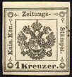 Austria, LV, newspaper tax stamp, 1858 / 59, ANK number LV 1, 1 Kreuzer, black,' type I, light cancellation, minimally thin in of the left lower corner otherwise in perfect condition, good margined, signed Ferchenbauer & Müller, Sassone = (15.000 Euro), ANK = (4.500 Euro)