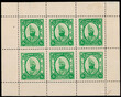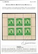 Bijawar 1936 8 anna emerald-green(SG 13) complete sheet of 6. Hinge on margin, stamps mint never hinged. Catalog value £226 as singles. ISES certificate