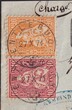 ENTLEBUCH, Nr.32+38 auf Briefstück mit zentrischen Vollstempeln: 27.OKT.1871, gut gezähnt auf Chargé-Brief-Ausschnitt.