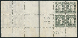 “限東北貼用”壹圓蓋於拾圓新民版總理像,四方連新票,原票覆蓋變體