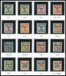 1929-33年一組限省貼用民國紀念票新票及蓋銷票,置於14張冊頁上,共15套票,請預覽。