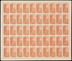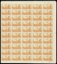 1943年日佔華中加蓋收回租界紀念改值票150套,分別爲50方連及100方連各一套,均原膠無貼,微黃,部分齒孔分離。上品。