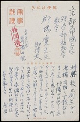 1937年日本楠公2錢郵資片自上海寄日本,銷「軍事郵便」紅色戳記及手寫「10.1」日期,旁蓋「千葉・大多喜、12.10.19」(昭和12年)到達戳記。寄件人隸屬「上海派遣松井部隊」,為淞滬會戰期間由上海派遣軍司令松井石根直屬部隊寄出。松井石根因指揮部隊於南京大屠殺中負有直接責任,戰後遭盟軍判處死刑。