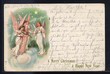 Farblithographie "amerikanische Weihnachtskarte" mit Panorama und Ansicht Neujahr 1902+musizierender Engel. Eckknick. Karte mit Briefmarke 1902 gelaufen. Zustand II.