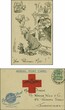 1918 (24. Nov.): Red Cross Aerial Post Card "Make Your Sixpence Fly" of second printing, showing on reverse hand-painted comic "Your Postcard Miss!" in black ink, franked with ½ d. green tied by clear strike of special dated postmark "Aerial Post -24. Nov.A18" addressed to Johannesburg. Card with blue 'wings'- imprint little shifted to top of Red Cross. A fine and unusual usage.