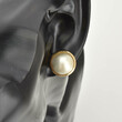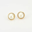 Gelbgold 585, runde Form mit abgetrepptem Rand, mittige eingesetzte halbe Perle in grau-weißem Grundton mit feinem Lüster, Steckbrisuren, Tragespuren, D ca. 1,5 cm, brutto ca. 4,2 g