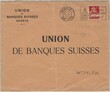 Coil stamp from POKO device with perfin the UBS Genève on cover with rare flags postmark "Le schnapps ruin la famille et la race" catalogue value: LP