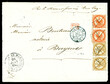 Aigle 10c bistre en paire (pd) + 40c orange en paire, tarif Martinique-France par voie Mexicaine sur lettre double port de ST PIERRE le 26 juin 1862 pour Bayeux. TTB (certificat) Qualité: Oblitéré